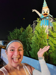 That 10k was the hardest race I've ever run ever. I did okay the first 3 miles, but the wheels fell off the wagon halfway through. I was tired, every muscle was sore, my feet were in pain and felt like they were on fire with every step I took, my head hurt, and I was questioning every one of my life's decisions that had led me to that point in time. I kept an eye on the Balloon Ladies Tracker. Disney requires a 16-minute per mile pace from the last person to cross the start line. The Balloon Ladies, aptly named because they tie a big Mickey balloon around their waist, start last and keep pace. If you fall behind them, you're in danger of being swept off the course and not being able to finish. At some point, I calculated that I could walk the rest of the way and still barely finish ahead of them, and walk I did. I have no idea how I'm smiling in the 5-mile picture below. All I can say is that it was a bold-faced lie, and I was close to tears while texting Amanda to get Star Wars Rise of the Resistance Lightning Lane passes. By the finish line, I was so out of sorts, that I didn't get it when a cast member yelled at me, "Luisa, the donkeys are out again!" By the time I got the joke, I turned around to say, "I'm on it!" But I crossed the finish line timing mat basically backwards and missed all the finish line photos!
